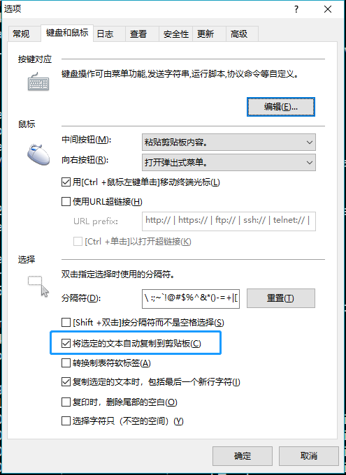 选择工具→选项后,选择键盘和鼠标tab,下面将"将选定的文本自动复制到剪贴板"勾选上,这样只要选中一条记录就复制到了Xshell