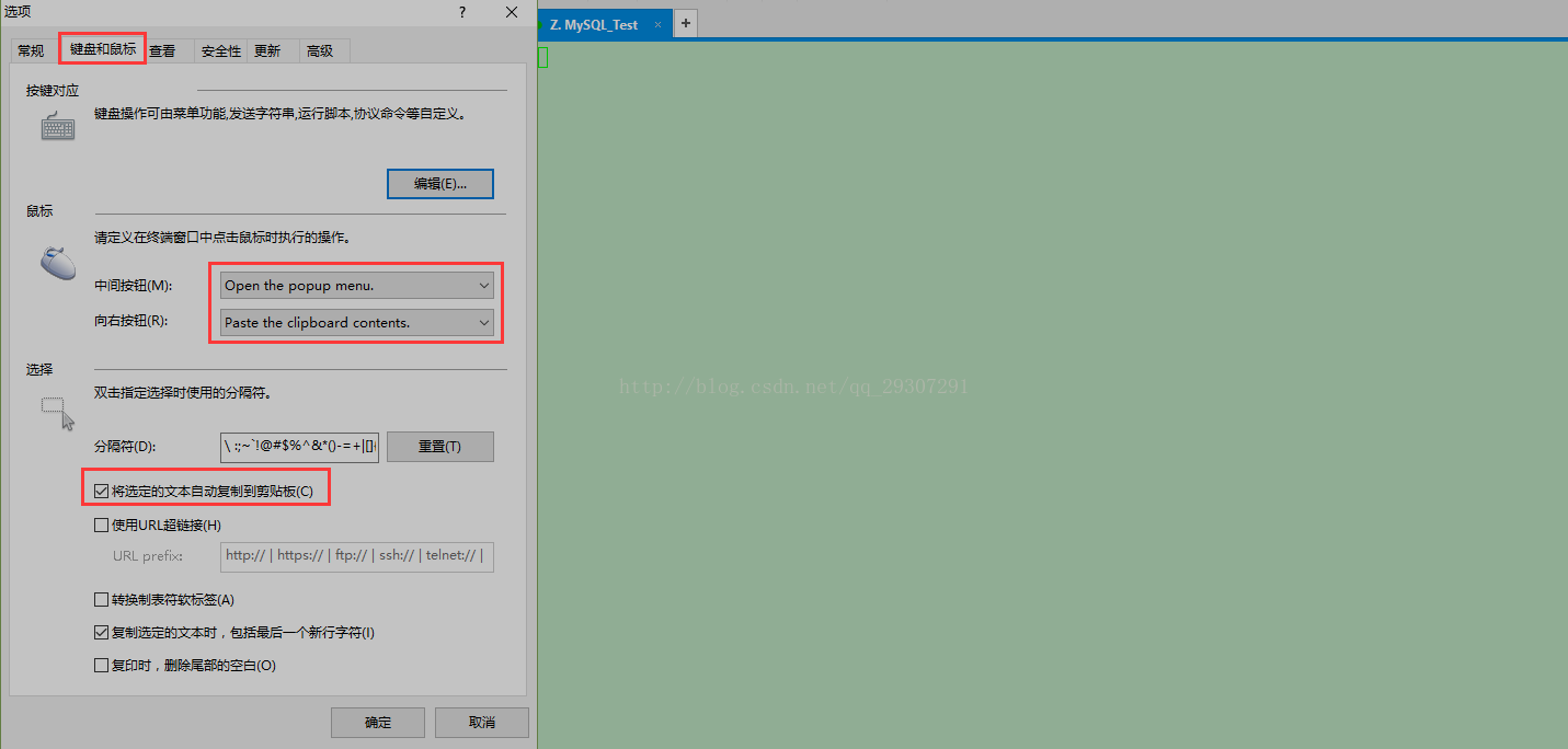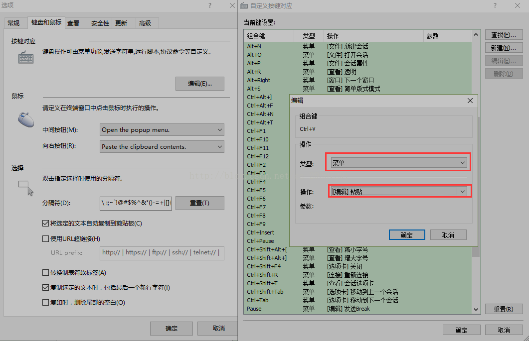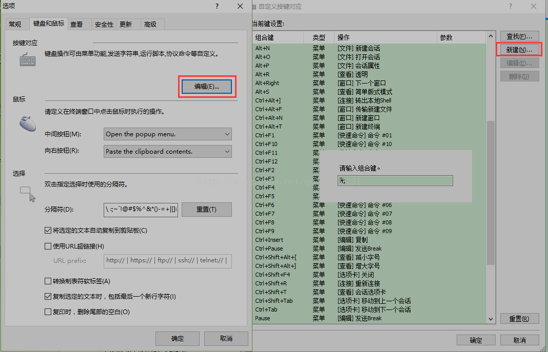 以前用Putty, 里面有选中后, 点击鼠标右键快速粘贴的功能, 用Xshell后发现默认没有这个设置. 但是Xshell因为界面漂亮得多,功能也丰富得多, 并且一直在更新维护, 所以还是喜欢用它. 一次在视频课程上, 看到老师用XShell也实现了和Putty上的功能, 求助度娘, 找到了这个被隐藏起来的好用的功能.
