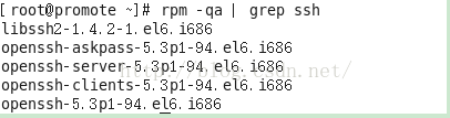 如图所示说明centos 6.5系统已经为我们默认安装了SSH包。