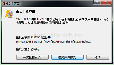 注:此对话框一般会在用户第一次登录服务器的时候才会显示,特出情况除外。