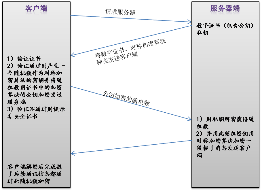 4)浏览器收到消息后解密成功,则握手结束,后续的信息都通过此随机密钥加密传输。