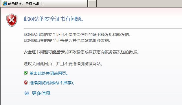 3)客户端验证服务器端发送来的数字证书是否与本地受信任的证书相关信息一致;如果不一致则客户端浏览器提示证书不安全如下图所示