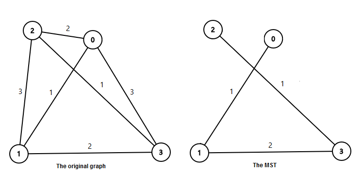 The weight of the minimum spanning tree is the sum of the weights on the edges included in it.