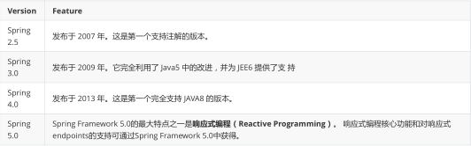 Spring面试题131道 1、不同版本的 Spring Framework 有哪些主要功能?