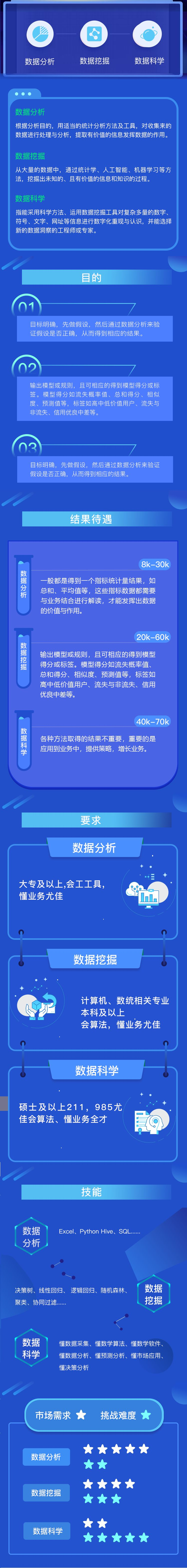 一直以来有人问:“ 数据分析 VS 数据挖掘 VS 数据科学家,它们到底有什么不同?入行大数据的话该怎么选?” 估计 90% 程序员,包括一些数据相关工作的⼩伙伴,都给不出准确回答。最近整理了这张对比长图,来回答这个问题!PS. 被问次数太多了,实属无奈