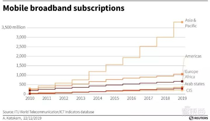 ▲全球移动宽带近10年来订阅情况