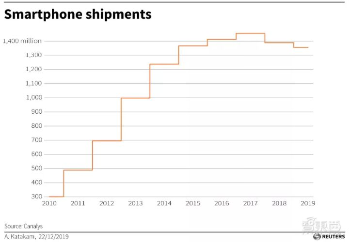▲全球智能手机近10年以来的出货量