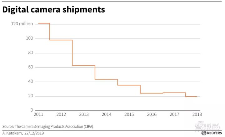 根据相机和成像产品协会(CIPA)的数据,全球数码相机出货量从2010年的峰值1.21亿台下降到2018年的1900万台。与此同时,最新的手机配备了多达四枚镜头和尖端软件算法,比以往任何时候都更容易获得完美的拍摄效果。前置摄像头可能是最忙的:谷歌报告称,其安卓设备每天要拍摄9300万张自拍。
