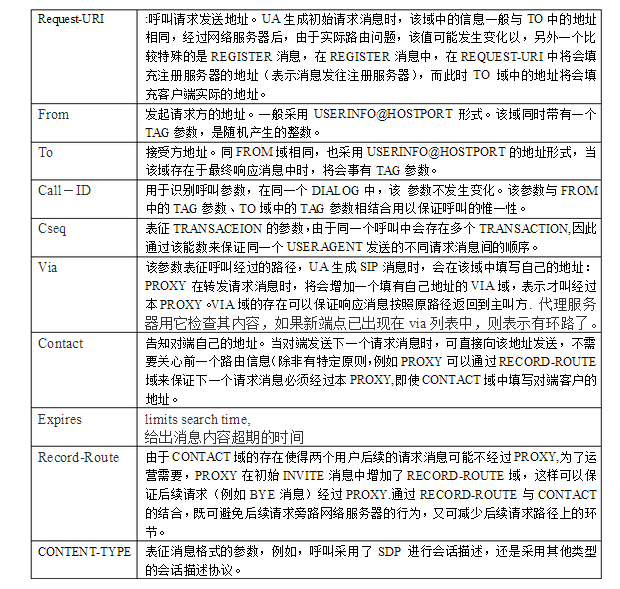 :呼叫请求发送地址。UA生成初始请求消息时,该域中的信息一般与TO中的地址相同,经过网络服务器后,由于实际路由问题,该值可能发生变化以,另外一个比较特殊的是REGISTER消息,在REGISTER消息中,在REQUEST-URI中将会填充注册服务器的地址(表示消息发往注册服务器),而此时TO域中的地址将会填充客户端实际的地址。