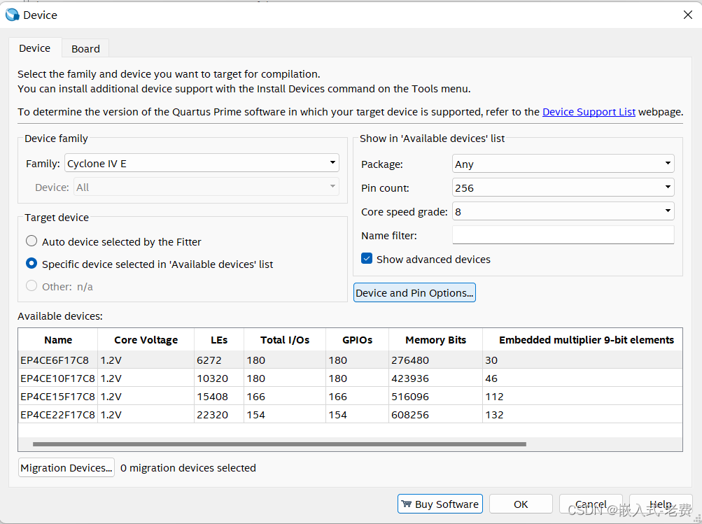 8、配置fpga属性,单击“Assignments”-》“Device”,选择“Device and Pin Options”