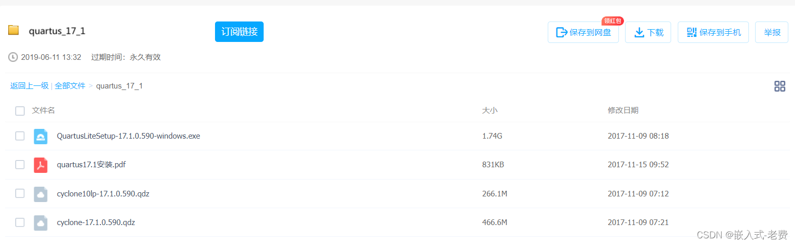 除了quartus这个平台软件之外,还需要安装cyclone器件库。器件库都是以qdz文件结尾的。不需要单独安装。在安装quartus的时候,会自动把这些器件库一起安装的。