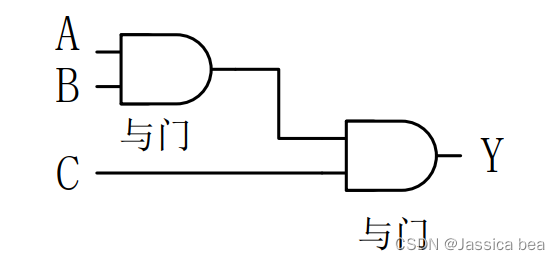 当用户在 EDA 工具上通过原理图或 硬件描述语言设计了一个逻辑电路以后, FPGA 开发软件会自动计算逻辑电路的所有可能结果,并把真值表(即结果)事先写入 RAM 中。这样,每输入一个信号进行逻辑运算就等于输入一个地址进行查找表操作, 通过地址找到对应的 RAM 中的结果, 最后将其输出。以实现数字逻辑 Y=A&B&C 的功能为例。如果是在专用 ASIC 中,为了实现该逻辑,逻辑门都已经事先确定好, Y 的输出值为两个逻辑与运算后的结果,其基本的实现结构如下图所示: