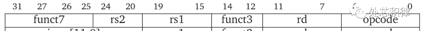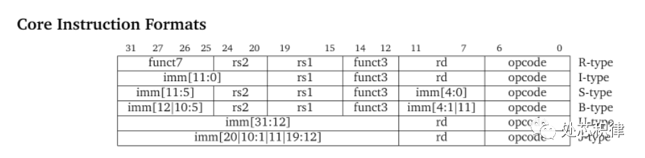 无论是哪种结构CPU都是通过指令实现程序跳转或者数据读写。什么是指令?以RISCV为例,其指令格式如下