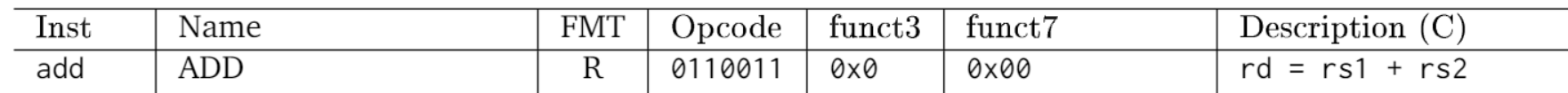 我们以简单的加法运算为例,比如我想做一个 rd= rs1+rs2 这样一个寄存器加法运算,伪代码就是 add rd,rs1,rs2 。通过上述RISCV的指令格式应该就是