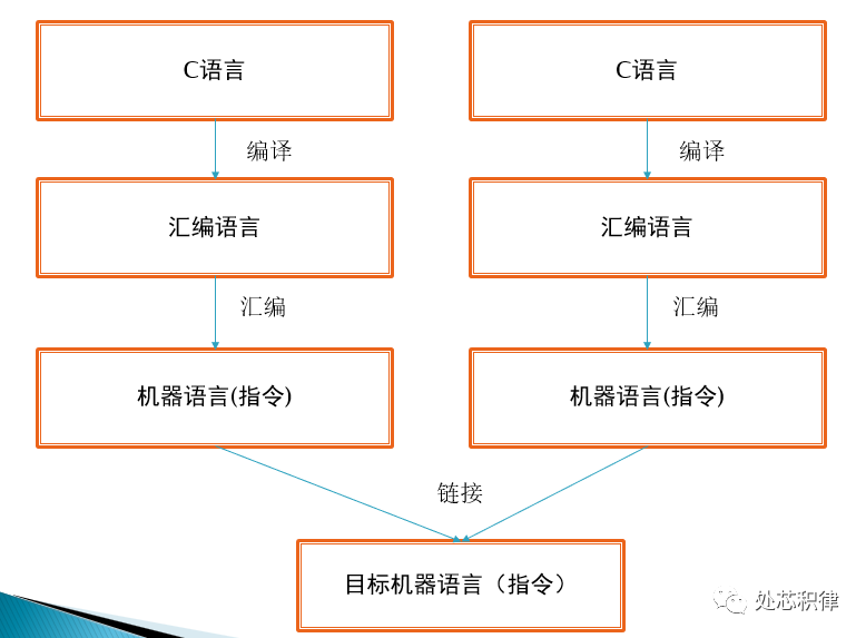从C语言到机器语言总共要经过3步,分别是编译,汇编和链接。