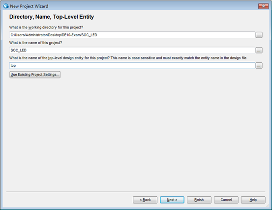 1.1 设置工程存放路径,工程名以及顶层文件名,如图1所示。