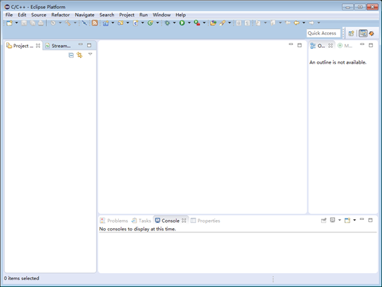 打开Embedded_Command_Shell.bat,输入eclipse &命令回车,打开DS-5开发软件。如图1所示。 DS-5界面如图2所示。