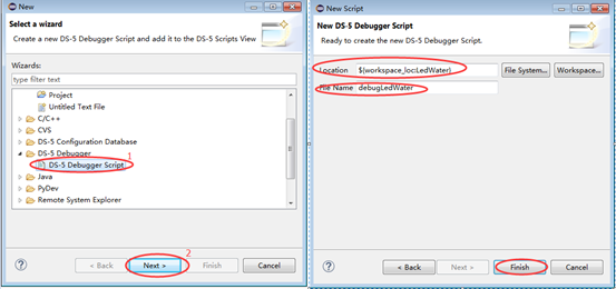 为LedWater工程新建调试脚本,步骤如图12所示。打开新建的文件输入以下内容。