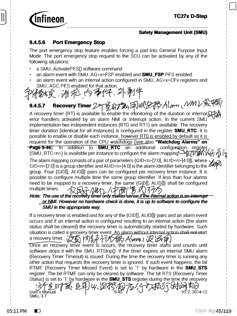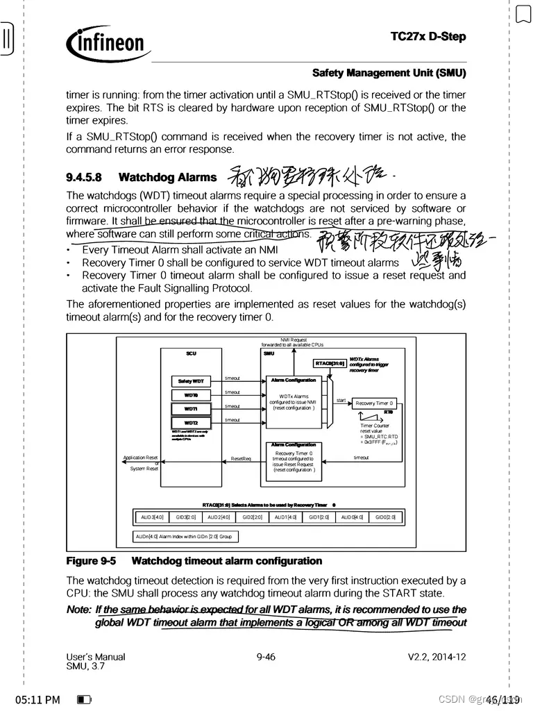 - SMU有两个恢复定时器可以用于监控Alarm NMI或者中断的动作执行时间。
