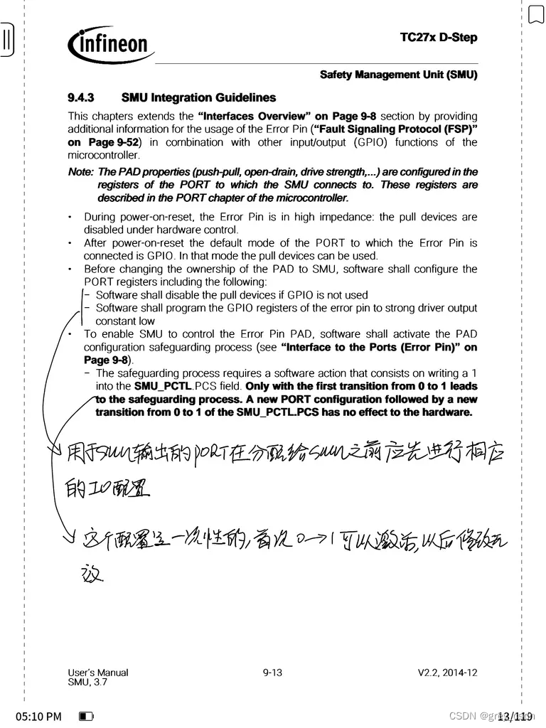 - SMU关于这部分主要是实现了一个PAD状态不受应用复位或者系统复位影响的功能,这的确是让我对这个SMU的故障输出PIN的功能有了全新的认识。之前一直觉得这个可以用一个普通的GPIO来替代,现在看上去这个功能还是很特殊的。