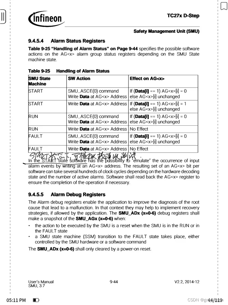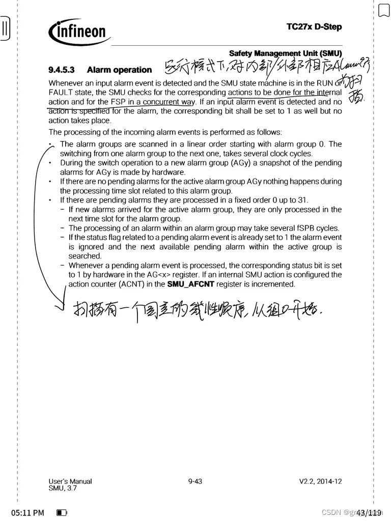 - SMU处理了整个MCU系统的Alarm,因此必然会有跨时钟域的问题产生。但是,SMU这方面本身的处理机制比较完善,不会有这方面的问题。