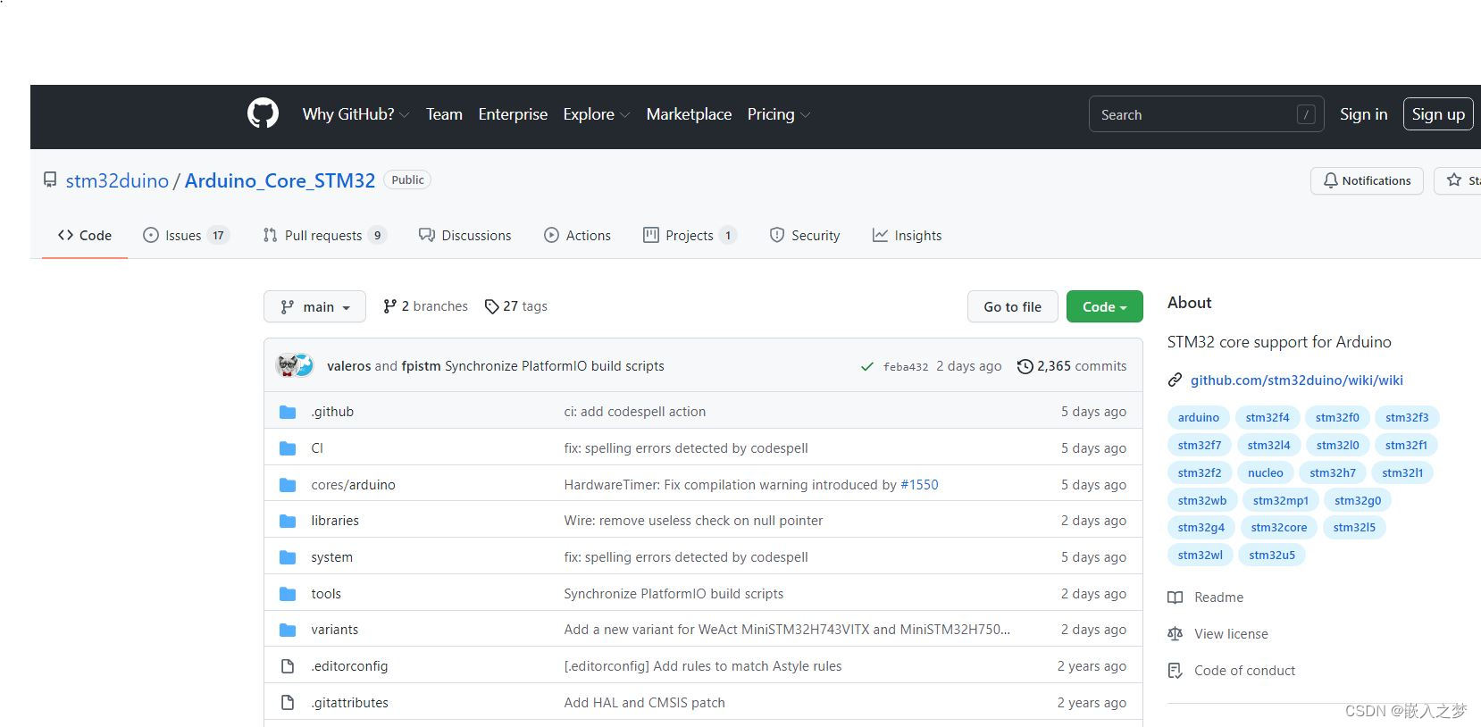 从目前状态看,ST似乎很用心于Arduino 环境的支持,几乎所有最新产品都在第一时间支持了,从核心库(core)的更新状态看,应该是十分及时的: