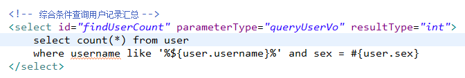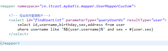 <select id="findUserByHashmap" parameterType="hashmap" resultType="user">