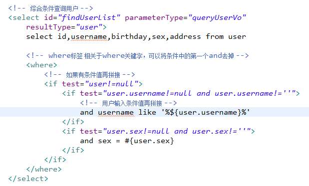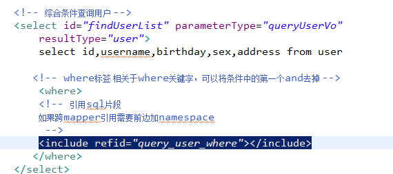对用户综合查询statement定义进行优化,使用动态sql。