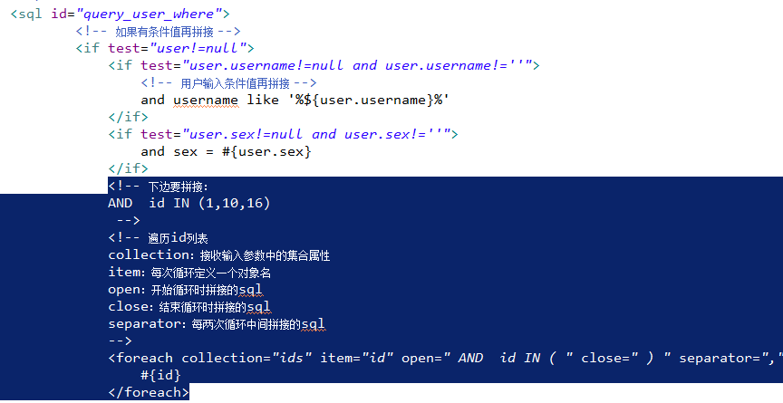 mybatis使用foreach循环遍历输入的参数。