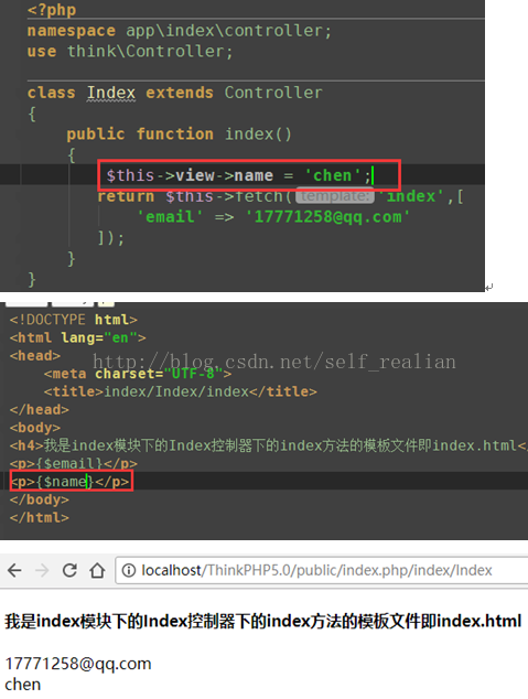 接下来我们看看,还能使用哪些方式能对页面的变量赋值。我们知道我们可以通过fetch()的第二个参数赋值。第二种方式,之前也介绍过,可以通过$this->assign()的方法。第三种方法,是通过$this->view获取view对象,然后给view对象设置属性值,比如:$this->view->name =‘chen’