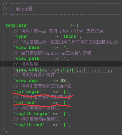 我们来看一下thinkphp的配置文件(convention.php),找到模板配置部分,直接拷贝到应用配置文件中