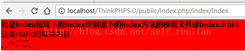 系统还提供了一些默认的字符串替换,比如__URL__(得到的是当前模块名和当前控制器名)、__STATIC__(得到的是/static也就是根下的static目录即public/static目录),thinkphp是一个单入口文件,所有的请求都会落到public/index.php,在我们安装好这个框架之后,public就会默认有一个static目录,我们之前介绍目录的时候介绍过,这个static目录是用来放静态文件的。我们在模板中经常会使用到static下的一些文件,比如说:css样式,js代码,图片等。我们就可以通过__STATIC__来代替/static目录。还有__JS__,它表示的是/static/js这个目录。__ROOT__,它表示的是框架所在的目录下的public目录,在我这里是/ThinkPHP5.0/public。__CSS__它表示的是/static/css目录