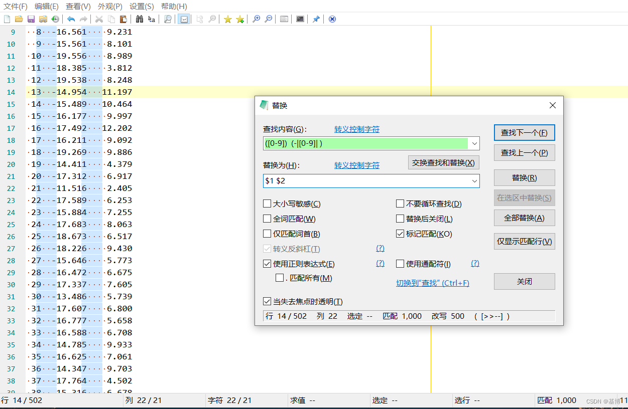 我希望将用两个空格作为分隔的缩为一个,单纯匹配两个空格,会匹配到不需要的地方,利用()进行设置变量设置和匹配。$[num]进行内容保存。