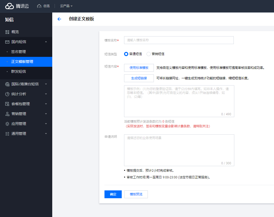 | 模板编号(后续文章会提到) | 国内短信-正文模板管理-ID |