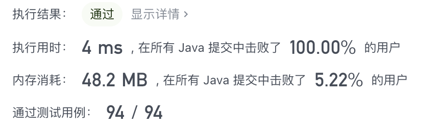 本方法中left和right俩指针只增加不减少,right从0增加到到n-1,left最多增加到n-1,时间复杂度为O(n)。