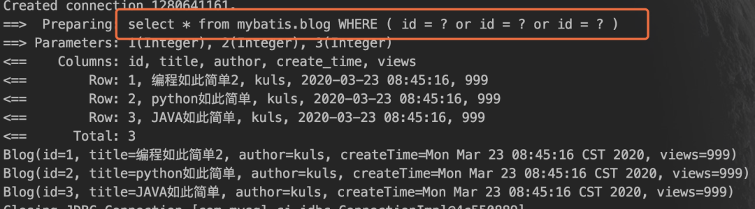 select * from mybatis.blog WHERE ( id = ? or id = ? or id = ? )
