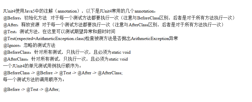 通常我们使用JUnit的时候,会有一些方法需要提前或最后执行,则需要如下几种方式进行注解