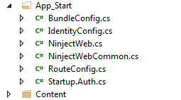 展开App_Start文件夹,发现自动添加了NinjectWeb.cs代码文件和NinjectWebCommon.cs代码文件。