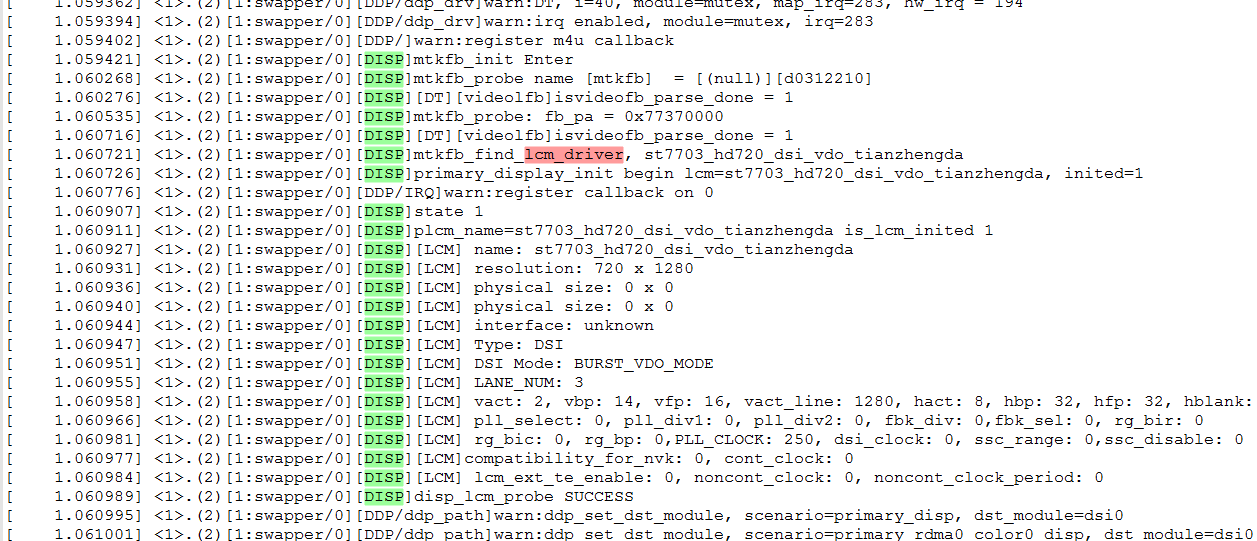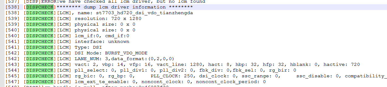执行disp_lcm_handle* disp_lcm_probe之后获取lcm驱动打印的信息: