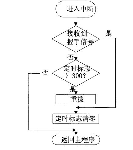 重拨的过程是设置一个1秒钟的定时器,在每次在进入定时器中断服务子程序我们定义的5分钟定时标志就累加1,当这个标志累加到300时进行重拨设置,重拨过程与上面讲的登陆过程相同,如果没有达到300则返回主程序,5分钟定时标志除了在重拨后清零外,主要的清零位置在接收网络信息的子程序中,当接收到网络的信息时证明还没有断线,该标志位清零不用重拨,所以,监控平台会隔3分钟发送一个握手信号给信息终端,如果超过5分钟没有收到任何网络信息则进行重拨。