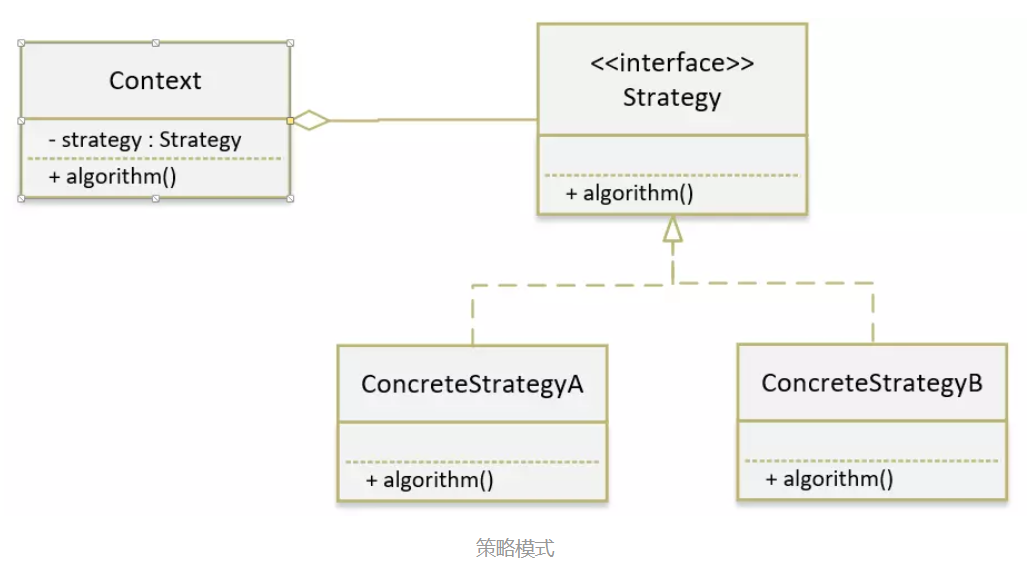 策略模式 使用的就是面向对象的继承和多态机制,从而实现同一行为在不同场景下具备不同实现。