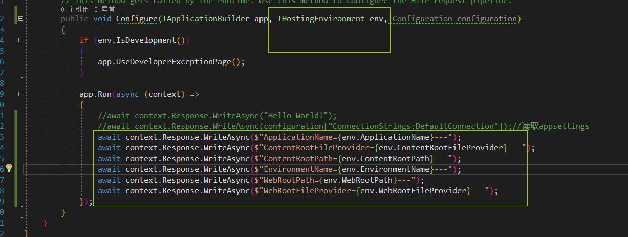 ContentRootPath(项目所在目录)、EnvironmentName(开发环境)、WebRootPath(WebRoot所在目录)、WebRootFileProvider(WebRoot文件提供程序)