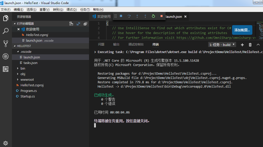 这时候我们打开终端执行命令dotnet run,可以很方便的执行,我们可以在