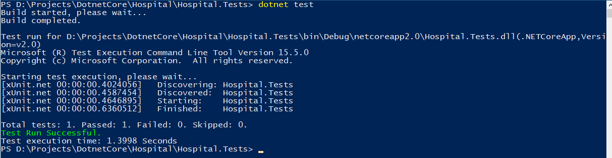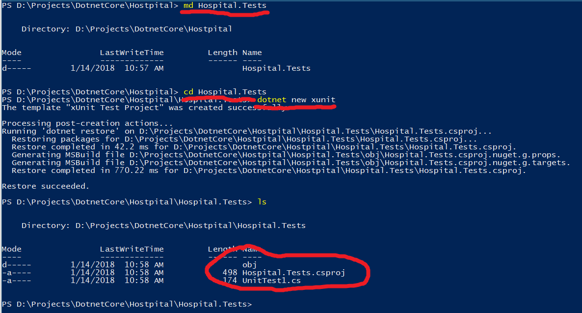 创建 Hospital.Tests目录,进入目录,使用命令dotnet new xunit创建xUnit单元测试项目。