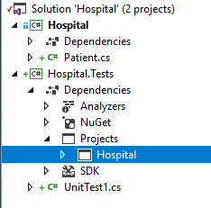 然后为Hospital.Tests添加到Hospital项目的引用。