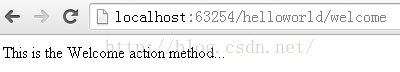 浏览http://localhost:xxxx/HelloWorld/Welcome.Welcome方法运行并且返回字符串“This is the Welcome action method...”,默认的MVC映射为 /[Controller]/[ActionName]/[Parameters]。