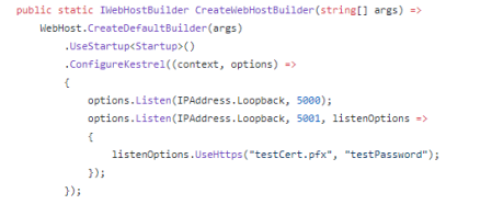 在上面的代码中,我们通过了配置文件来配置Kestrel,我们也推荐大家使用配置文件来配置Kestrel。相关配置Demo如下: