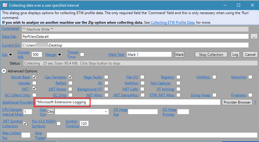 而在windows server,可以通过开源工具https://github.com/Microsoft/perfview来收集和查看日志,如下图所示: