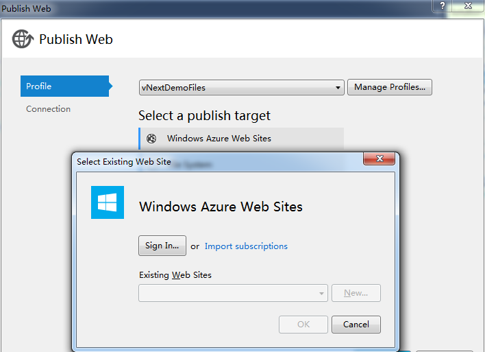 文件发布,也可以进行 Windows Azure 发布: