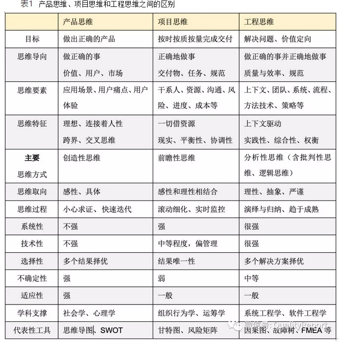 上面这张图,来源于《软件质量报道》公众号的文章《软件研发三大思维之三:工程思维》,在这张图表中,介绍了三种不同的思维,而工程思维则是与软件工程师们最为接近的一种思维方式。无论是基于目标为导向的解决问题、价值定向的基本能力外、做正确的事并正确地做事,并在做事中不断的提高质量与效率和规范化,也是一种正确的思维导向,由于全文太长,这里就不再赘述了。